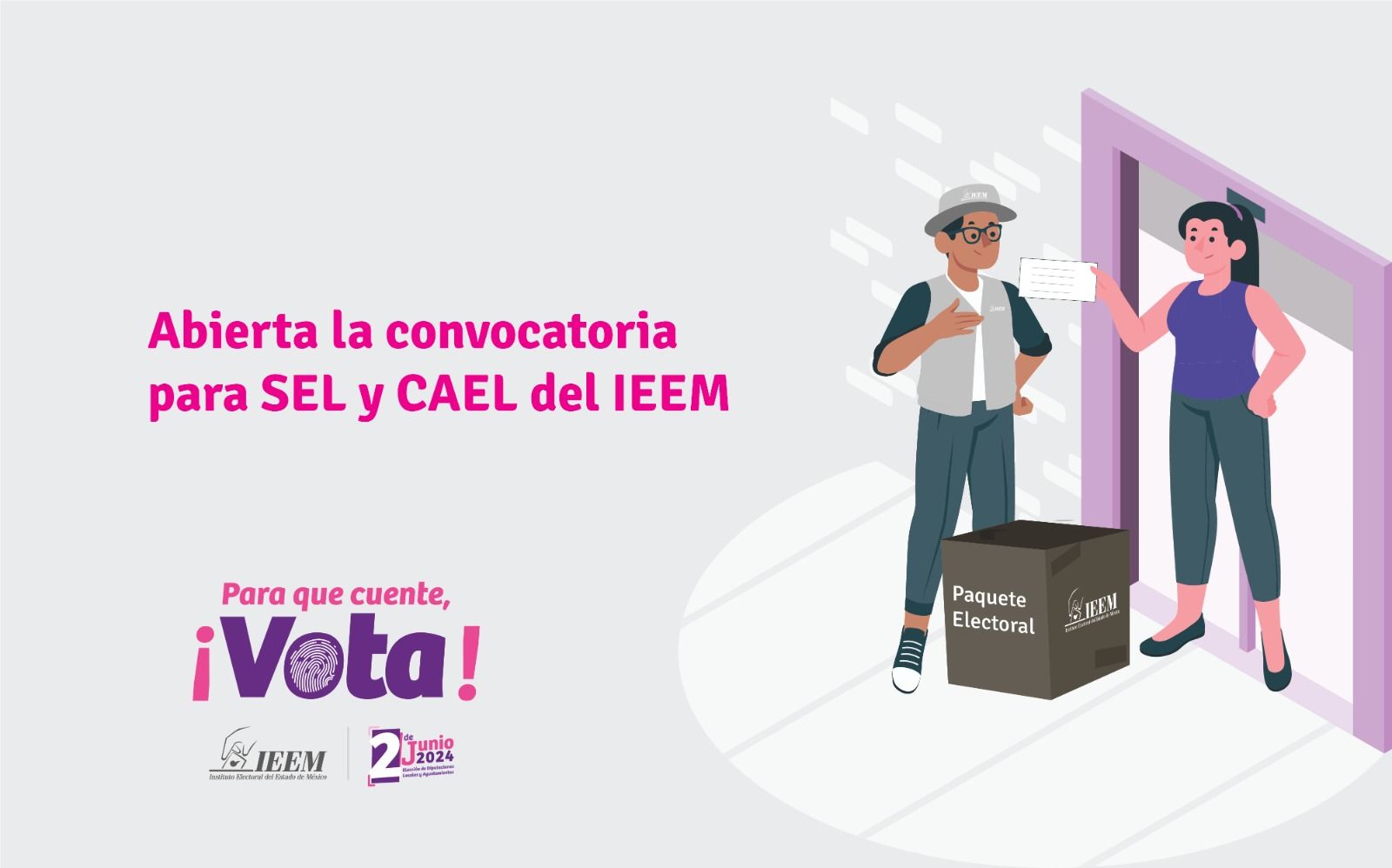 La organización de la Elección de Diputaciones Locales y Ayuntamientos 2024 en el Instituto Electoral del Estado de México (IEEM) continúa con el lanzamiento de la convocatoria para la Contratación de Personas Supervisoras Electorales Locales (SEL) y Capacitadoras Asistentes Electorales Locales (CAEL), quienes realizarán actividades que brindan certeza a la ciudadanía sobre el cuidado y contabilización de su voto.