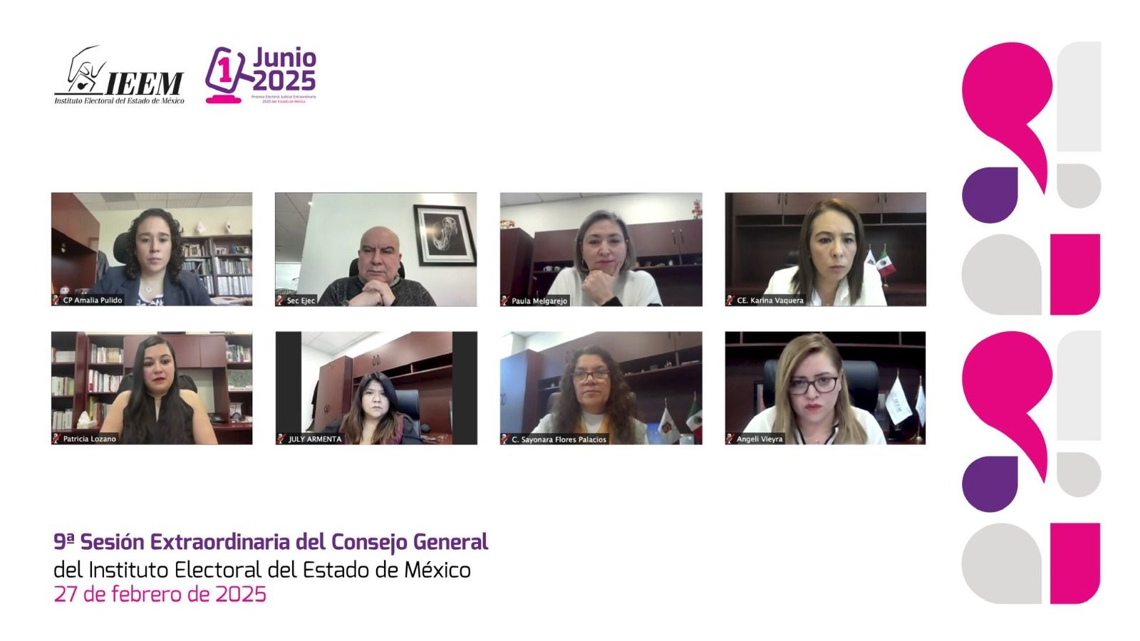 En su Novena Sesión Extraordinaria, el Consejo General del Instituto Electoral del Estado de México (IEEM), avaló los Lineamientos para la recepción y verificación de listados y expedientes de las personas candidatas que participarán en el Proceso Electoral Judicial Extraordinario 2025 del Estado de México, así como los Lineamientos para garantizar la paridad en el Proceso Electoral Judicial Extraordinario 2025 del Estado de México.
