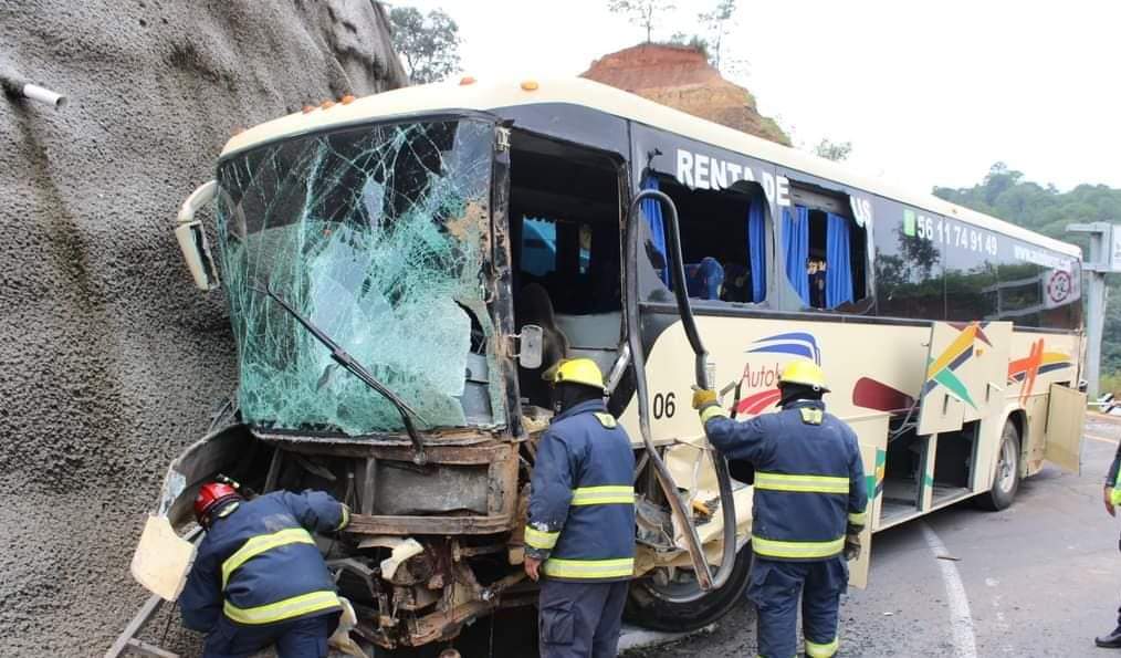 Turistas de origen Israelí se llevaron tremendo susto, luego de que el autobús en el que viajaban se impactara contra un cerro en el municipio de Valle de Bravo.