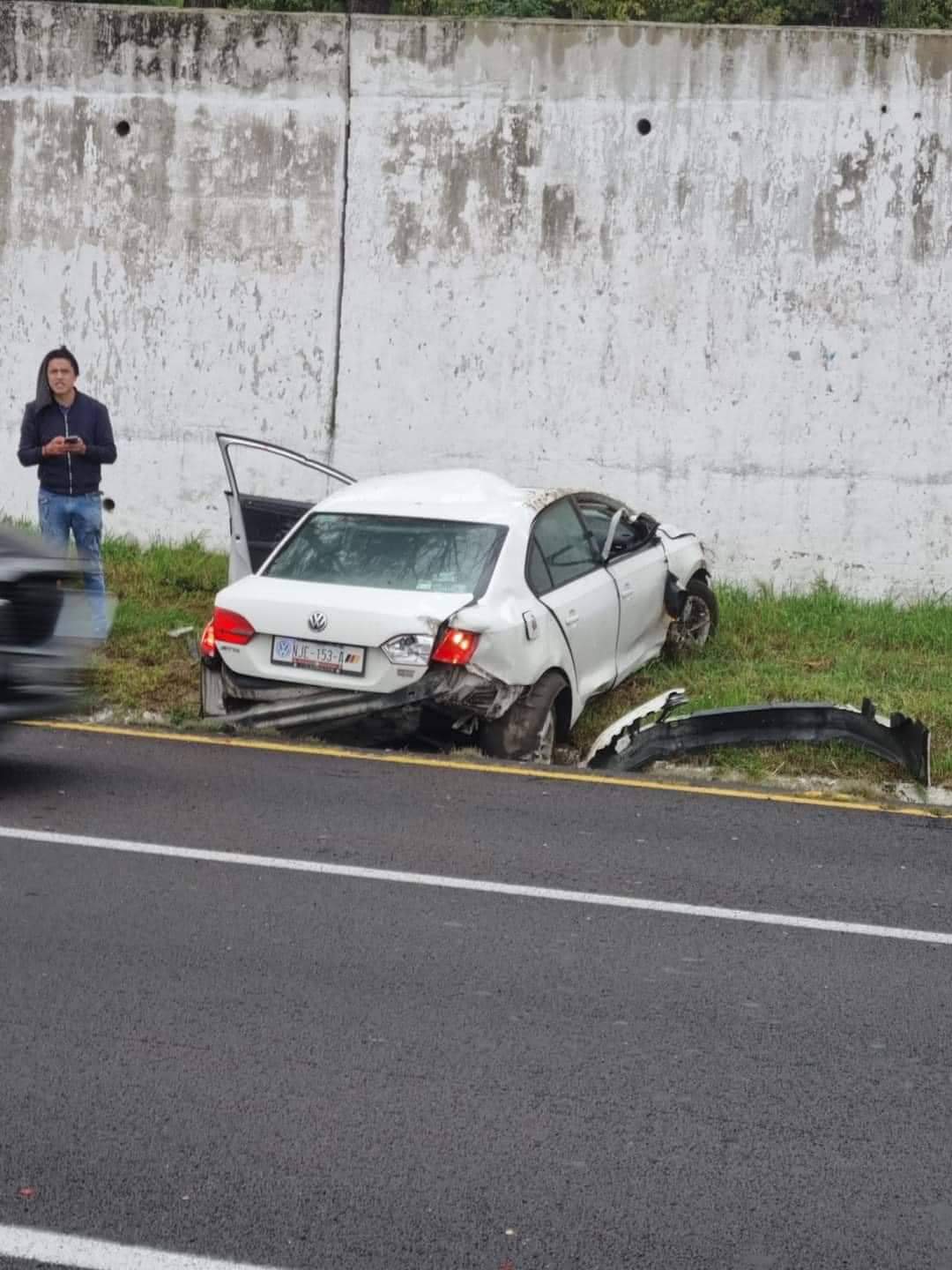 La mañana de este miércoles, un automovilista se accidentó sobre la autopista México-Toluca, en dirección a la Ciudad de México. A pesar de que el conductor viajaba presuntamente a exceso de velocidad, salió ileso del percance.