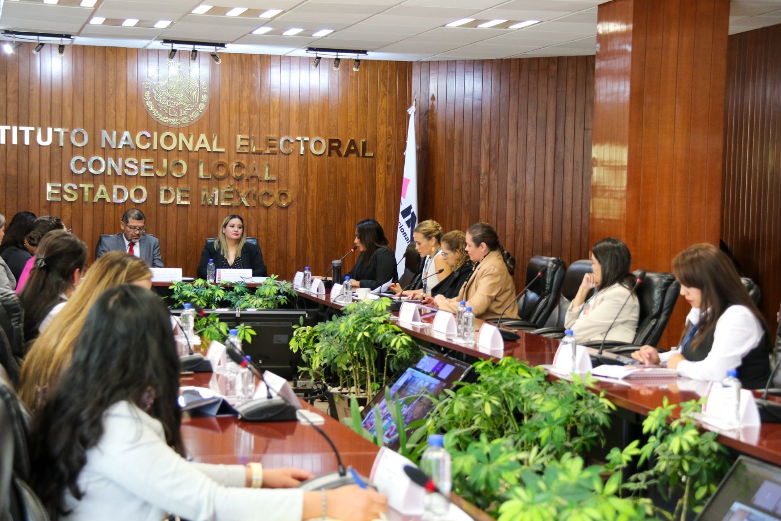En la Junta Local Ejecutiva del Instituto Nacional Electoral (INE) en el Estado de México, las Consejeras López Bringas, Laura Daniella Durán Ceja y Paula Melgarejo Salgado participaron en una reunión interinstitucional para presentar los hallazgos del Programa Piloto de Servicios de Primeros Auxilios Psicológicos, Orientación, Asesoría, Atención y Acompañamiento jurídico de las Mujeres en Situación de Violencia Política en Razón de Género, con enfoque interseccional e intercultural, durante el Proceso Electoral Federal 2023- 2024.