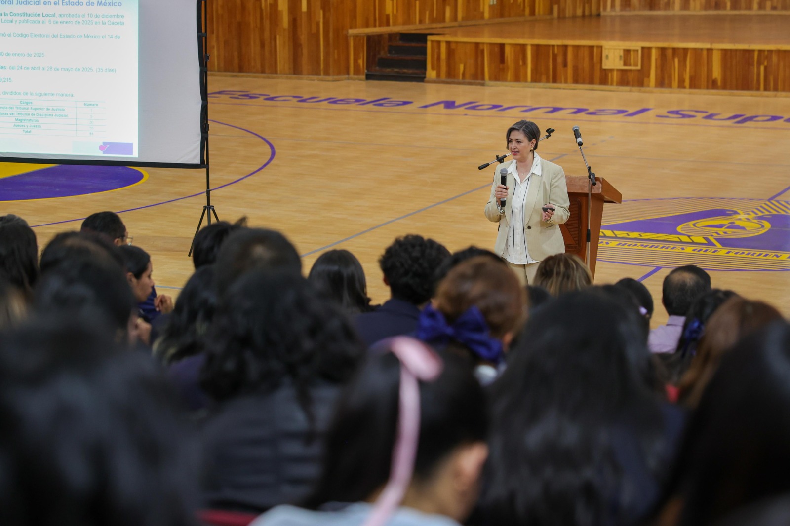 Como parte de la Hora Cultural de la Escuela Normal Superior del Estado de México (ENSEM), el Instituto Electoral del Estado de México (IEEM) compartió con el alumnado los pormenores del Proceso Electoral Extraordinario Judicial 2025.