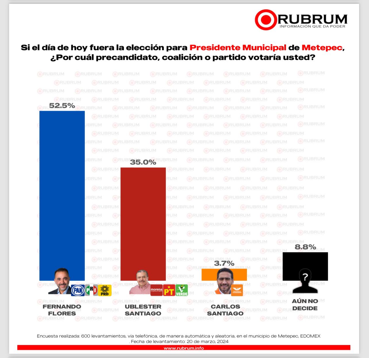 El día de hoy 21 de marzo, la casa encuestadora Rubrum, presuntó su más reciente sondeo en relación a las elecciones federales del mes de junio, incluido un sondeo de preferencias políticas en el municipio de Metepec, Estado de México.