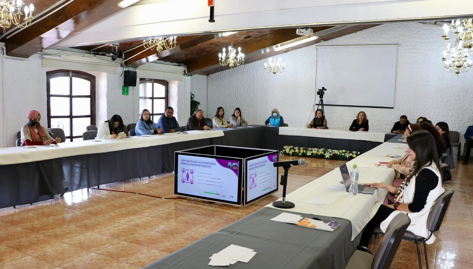 La capacitación contó con la presencia de las titulares de las Unidad para la Coordinación de Trabajos de Igualdad de Género y Erradicación de la Violencia Política en Razón de Género del IEEM, Susana Munguia Fernández y de Comunicación Social, Mónica Mendoza Salgado.