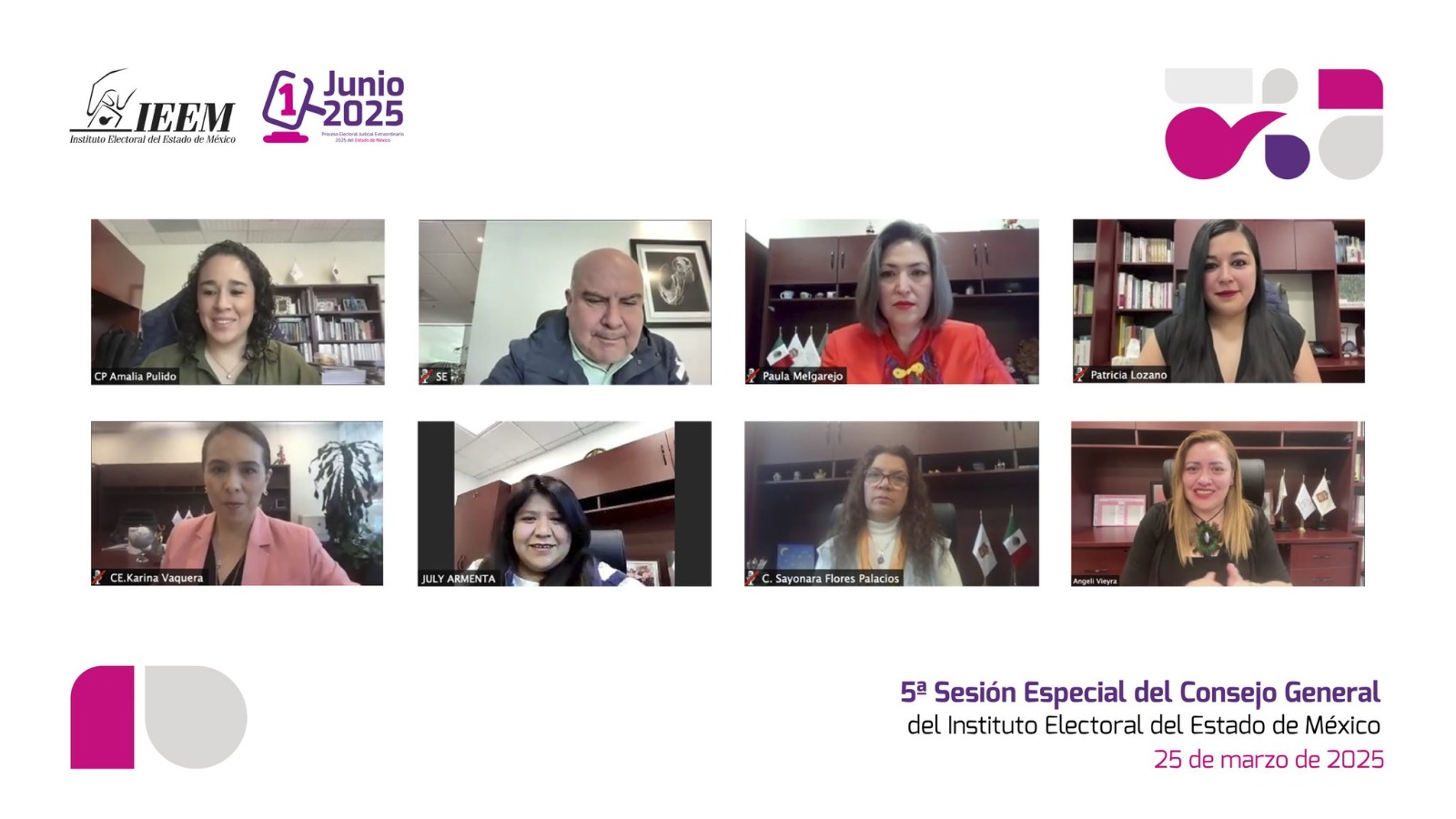 Durante la Quinta Sesión Especial del Consejo General del Instituto Electoral del Estado de México (IEEM), se aprobó el Proyecto de Acuerdo por el que se asignan las sedes de los Órganos Desconcentrados del Instituto Electoral del Estado de México para el Proceso Electoral Judicial Extraordinario 2025 del Estado de México.