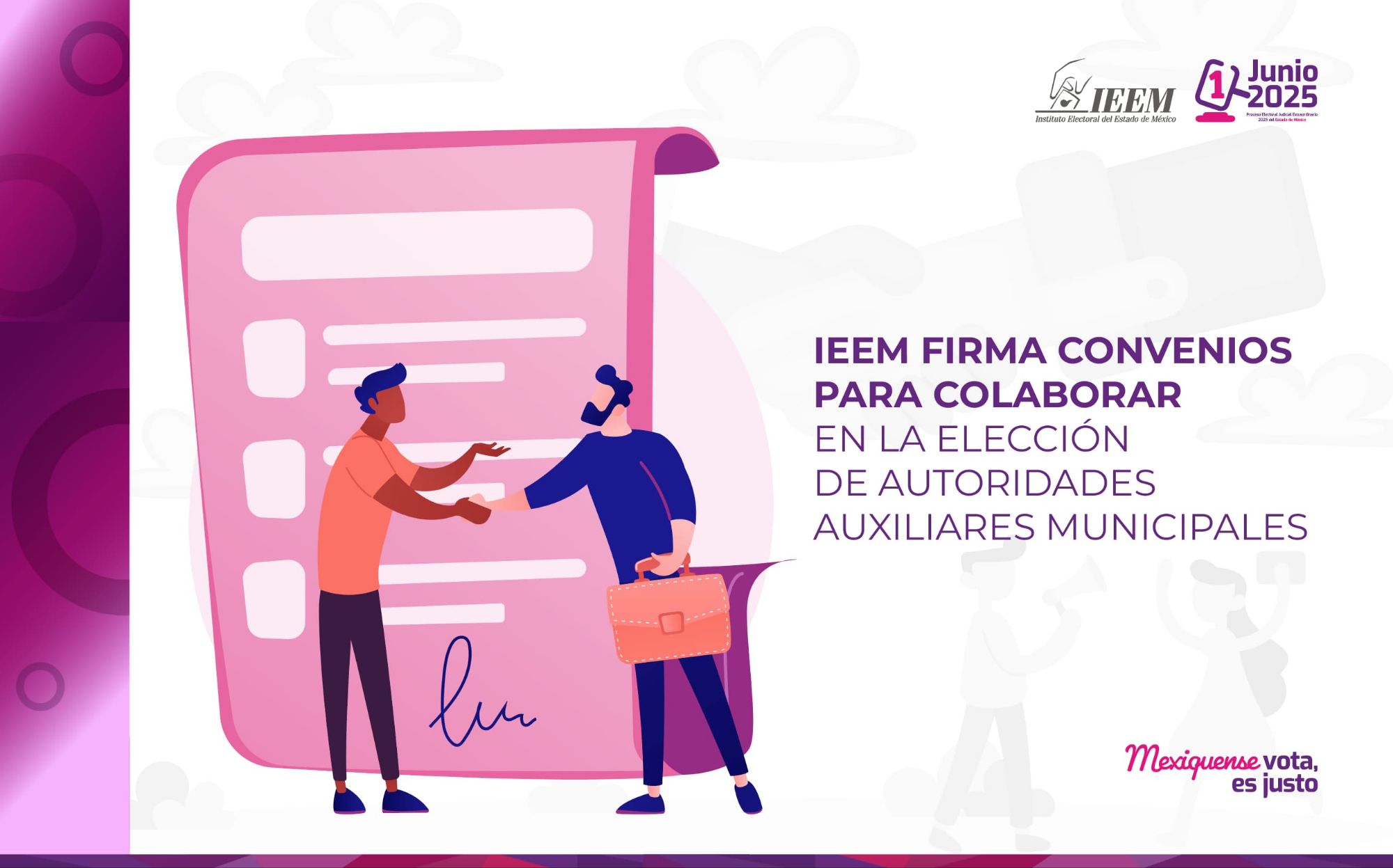 El Instituto Electoral del Estado de México (IEEM) firmó seis convenios de colaboración para apoyar en la organización, desarrollo y supervisión de las elecciones de autoridades auxiliares de los ayuntamientos de: Chalco, Huixquilucan, Naucalpan, Toluca, Zinacantepec y Atizapán de Zaragoza.