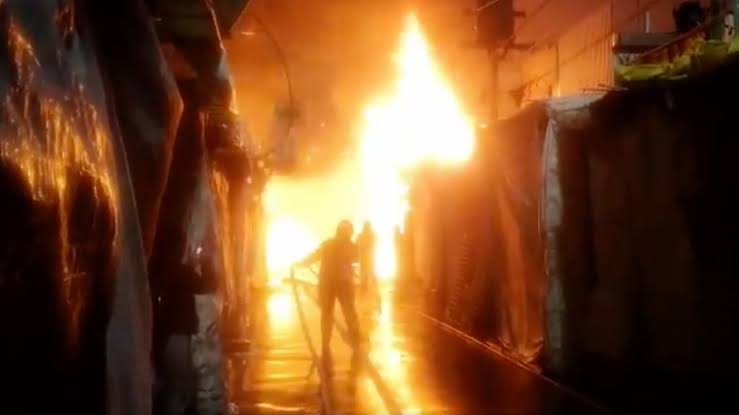 De acuerdo con reportes preliminares, el fuego se habría originado en un local de materias primas y afectó puestos semifijos.