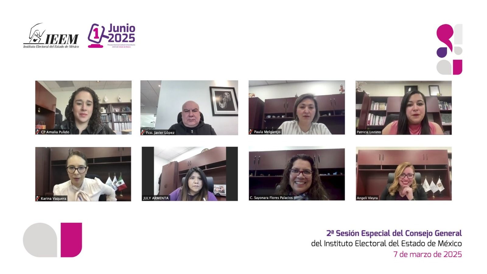 Durante la Segunda Sesión Especial del Consejo General del Instituto Electoral del Estado de México (IEEM), se aprobó el Proyecto de Acuerdo por el que se da cumplimiento al requerimiento realizado a la Legislatura mediante acuerdo IEEM/CG/34/2025 y se ordena la publicación de los listados de candidaturas para el Proceso Electoral Judicial Extraordinario 2025 del Estado de México, en la “Gaceta del Gobierno”, así como en los estrados.