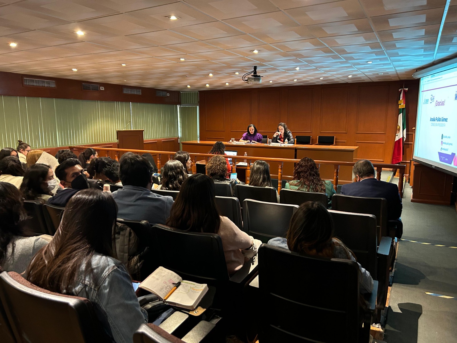 La Consejera Presidenta, explicó a las y los alumnos de Derecho de la UAEMéx que uno de los principales retos a los que se enfrentan las mujeres es a la violencia política en razón de género, por lo que es necesario identificarla, así como cualquier otra barrera para derribarla, mediante la generación de agendas sobre igualdad, vinculación con la sociedad civil organizada, y el establecimiento de redes de apoyo y mentoría entre mujeres.