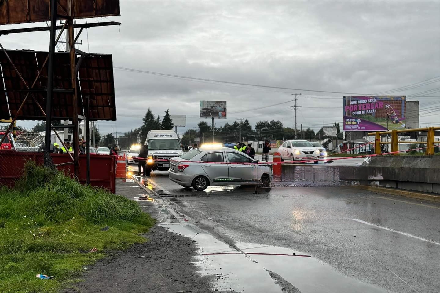 Dicho accidente se registró a la altura de San Miguel Totocuitlapilco, al momento de que el conductor de un vehículo particular marca Hyundai color gris, perdió el control de la unidad y termino impactandose contra la base de un puente vehicular, con dirección a la capital mexiquense.